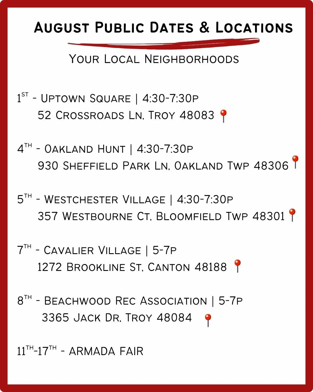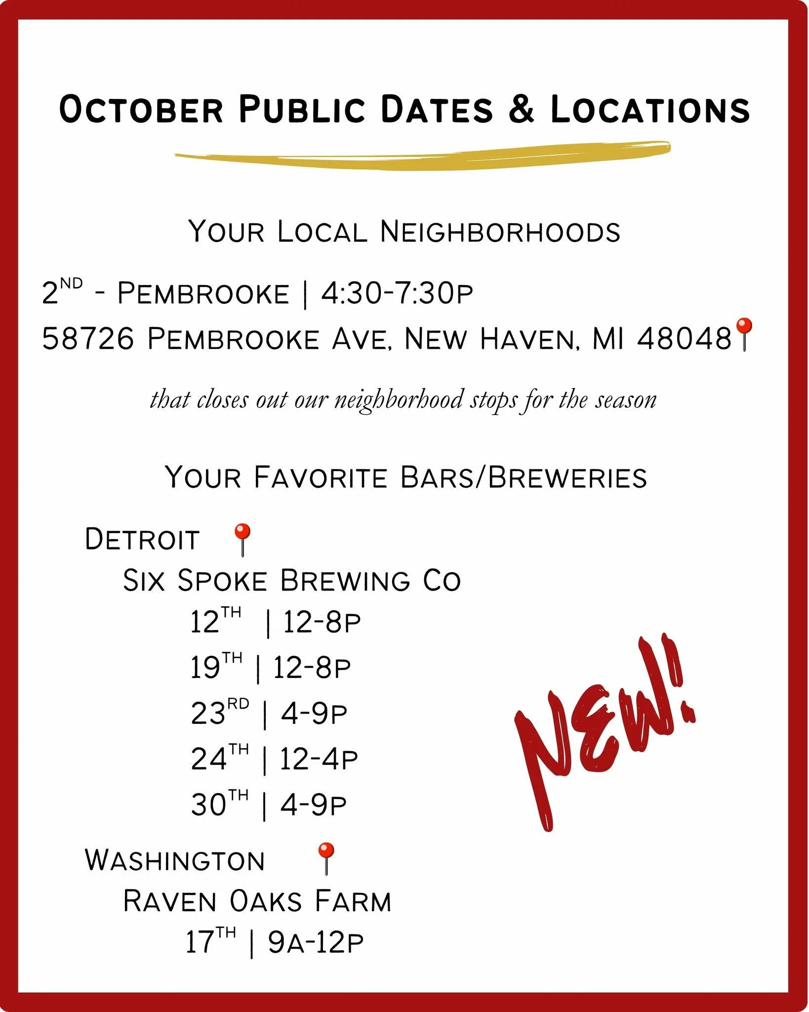 You will often see our trucks in neighborhoods that host truck rotations or bars and breweries without kitchens! We have the privilege of being regulars at a couple large fairs; like the Armada Fair and the Romeo Peach Festival. We post on social media regularly to keep our clients in the know on how to find us out and about.